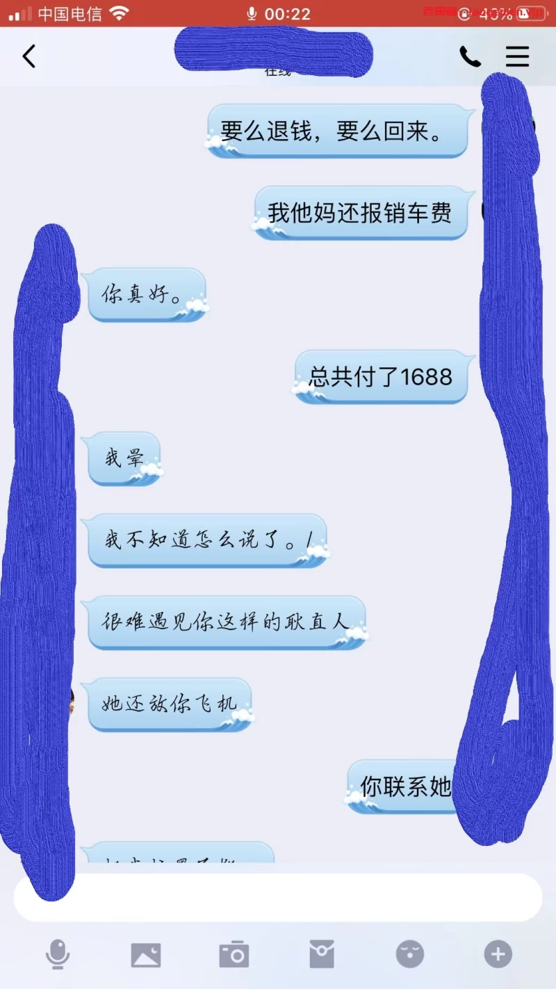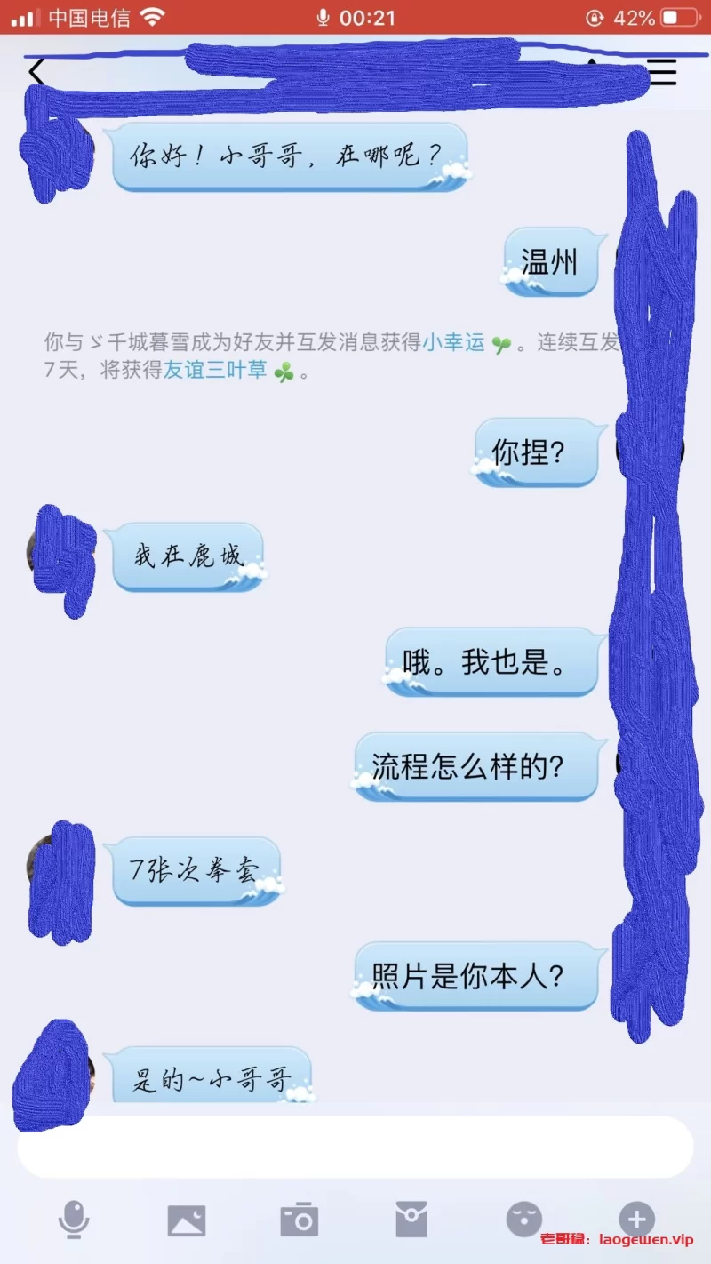 注意注意注意,温州的,号码是甘肃兰州的,189开头,尾号4587.贼没职业素质。谈好BY1500,还找我要车费,我从来不小气。直接打了1688.结果就泄了个火,其它什么服务都没有。直接躺床上澡都不洗。然后称我洗澡的功夫直接跑了。温州的各位狼友请注意这个骗子,别再上当。